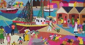I invite you to visit my art exhibit on these pages. There are numerous needlework, fiber art pictures to choose from. Also, you will find a large display of hand crafted woven cloth bags of various sizes and shapes, offered at quite reasonable prices. And, finally, my collection of useful hand painted decorative wood bowls and platters for use as serving dishes, salad bowls, fruit bowls and appetizer trays.